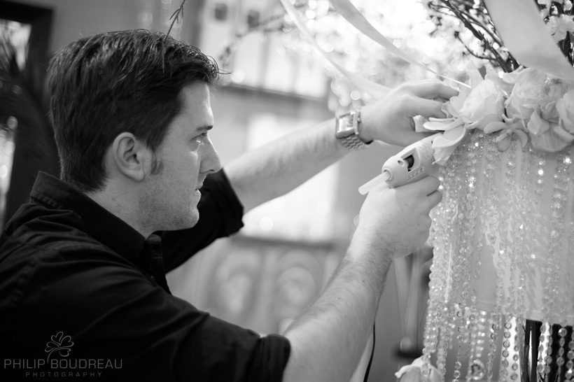 For now, here is a preview of what we were working on yesterday. Here is Jason Roy from Unico Décor putting on the final touches on his amazing tabletop centerpiece before the shoot.