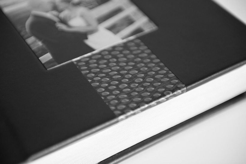 The first one is a 10×10 Designer Album with a Navy Leather cover and Glam accent strip. We can’t forget about the custom metal cameo on the front cover as well as imprinting in silver on the spine. To check out the full layouts of this album, click here! Following the Designer Album is an 8×8 Fine Art Book. It’s covered with Black Leather and a Sultry accent strip. Again, the cover features a custom metal cameo and imprinting on the spine. You will also notice a matching Slipcover for the Fine Art Book. Matching Slipcovers are available as an upgrade with any wedding album!