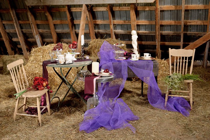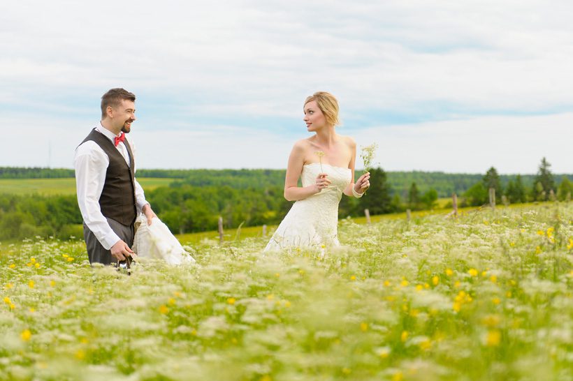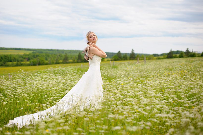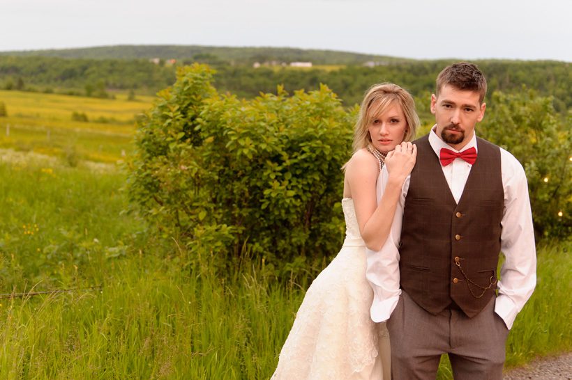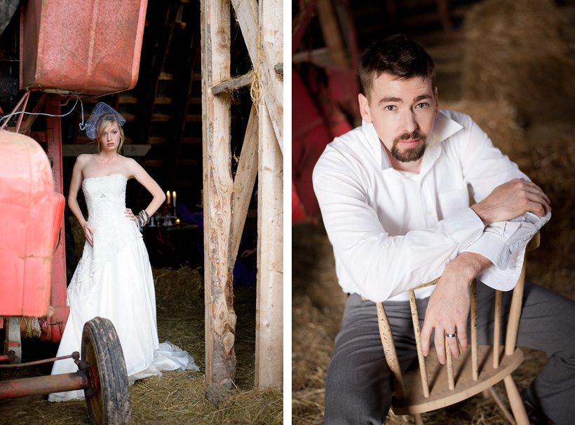 After having shot a wedding with Matt & Chera Yorke, we knew we had to work together again so we talked about getting a few models and shooting just for fun. Last May/June, Jill of Scuffed Boots Photography, Chera and myself were having lunch and we decided to get the ball rolling on the project. It started as a small shoot, then came way too big for what we had time for and finally shaped into something that was possible. We discussed the idea of including Designs Studio & Co. into the mix to create something that we knew would be incredibly beautiful. Our idea for the shoot was to create a country themed wedding look and once we had everything worked out, the whole team met at Jill’s farm, just outside of Moncton. Jill’s parents even contributed to the shoot by making sure everyone was fed before starting (a big thanks to Jill’s parents!).